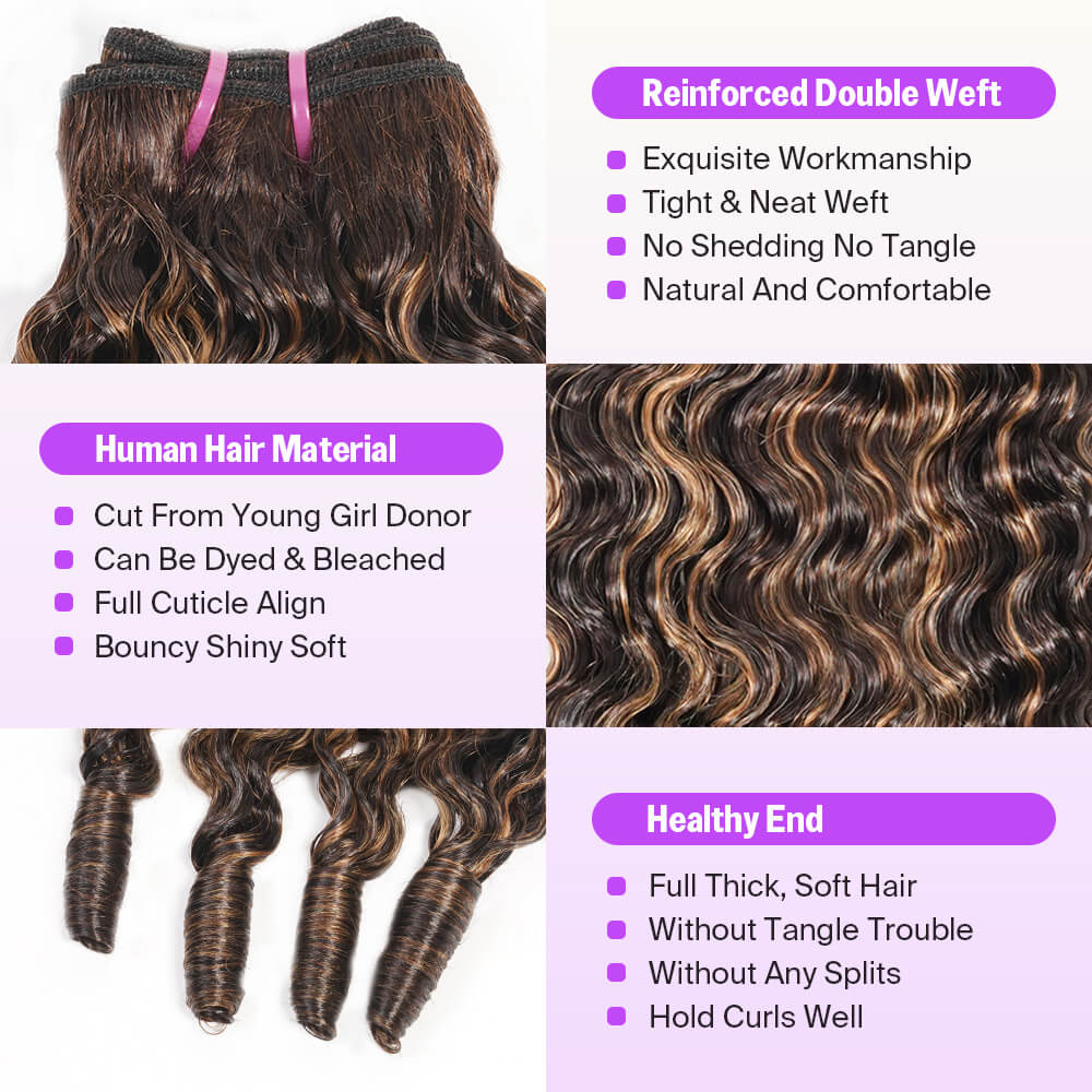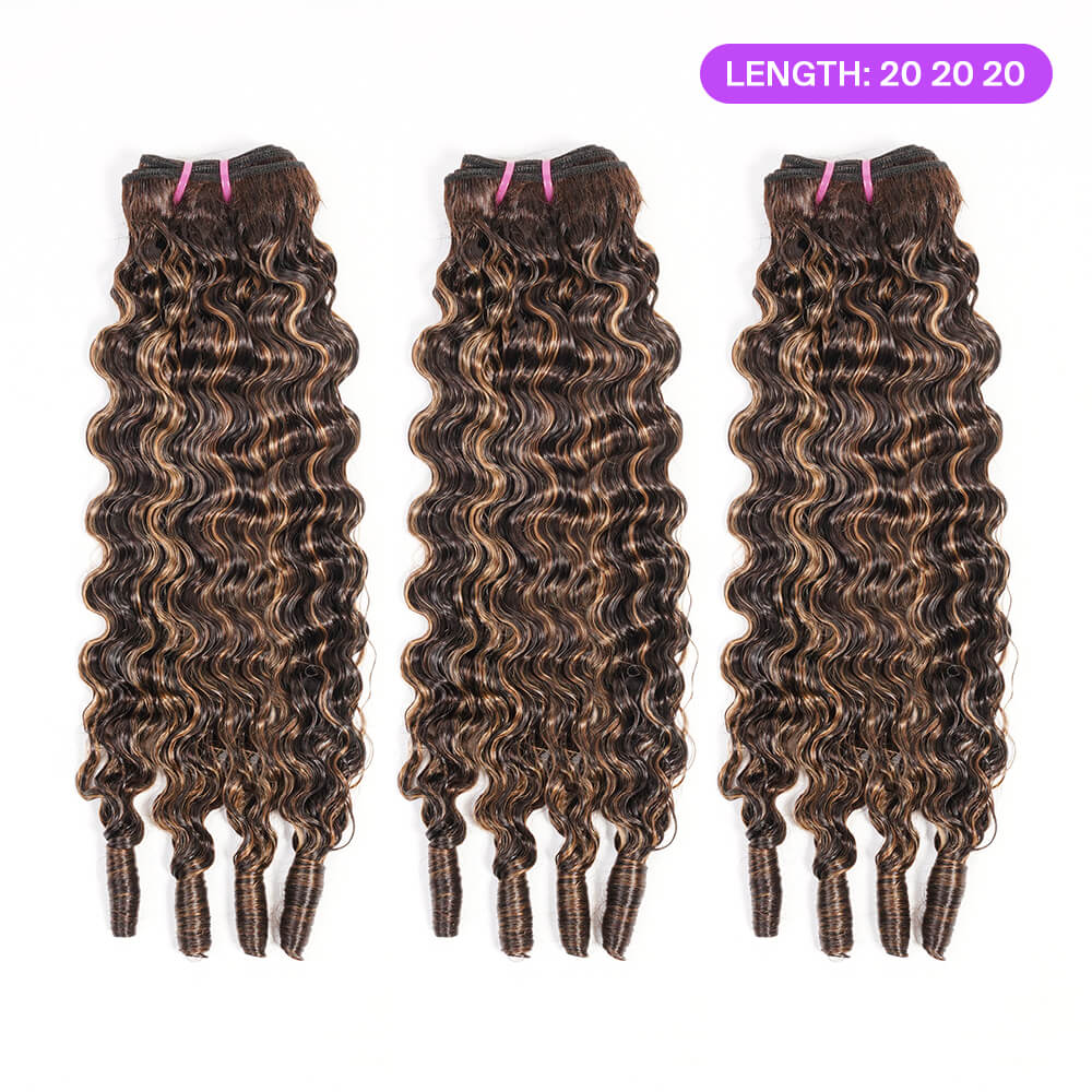 Megalook 12A Highlight P4/27 Burmese Curly 3 Bundles With Finger Coil Ends Brazilian Human Hair Extension