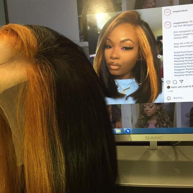 Megalook Bogo Free Black 13*4*1.5 T Part Bob Wig With Ginger Highlights In Front 12 14 Inch Human Hair