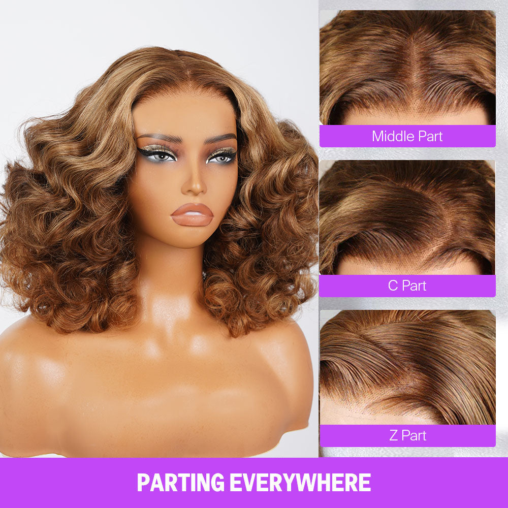 Megalook Bogo Free 250% Density 13x4 Lace Frontal Bouncy Curl Wigs Natural Black/#4 Chocolate Brown Full & Thick