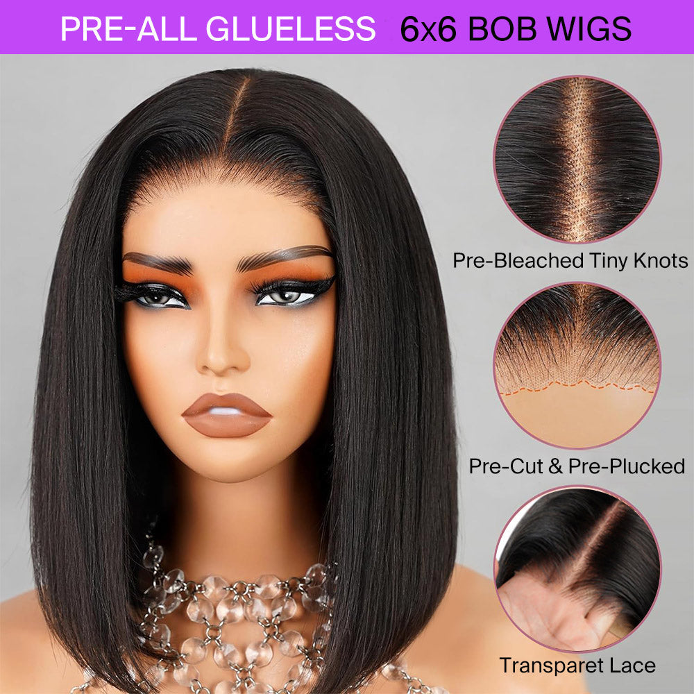 Megalook Bogo Free 6 Inches Deep Part Pre-Cut Lace Straight Natural Black Bob Wigs