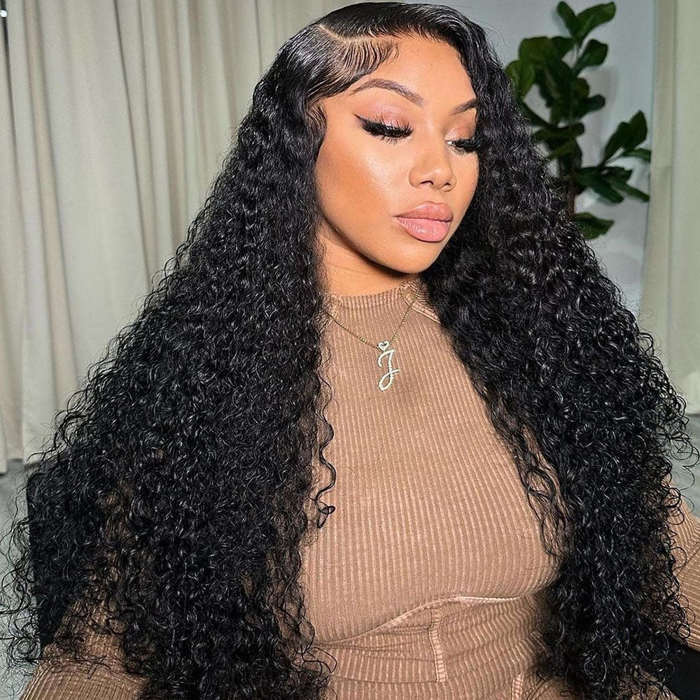 Megalook 13x4 Lace Frontal Jerry Curly Wigs invisible knots Natural Black Natural Edges