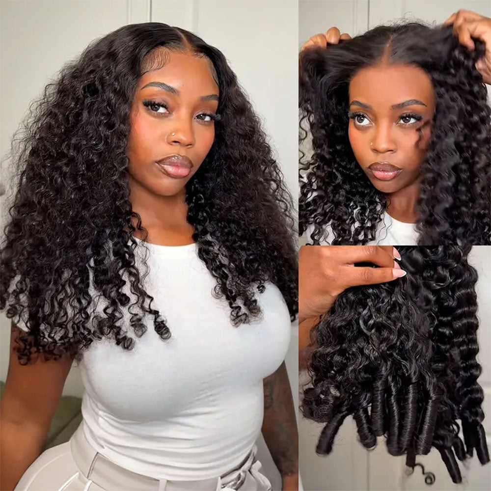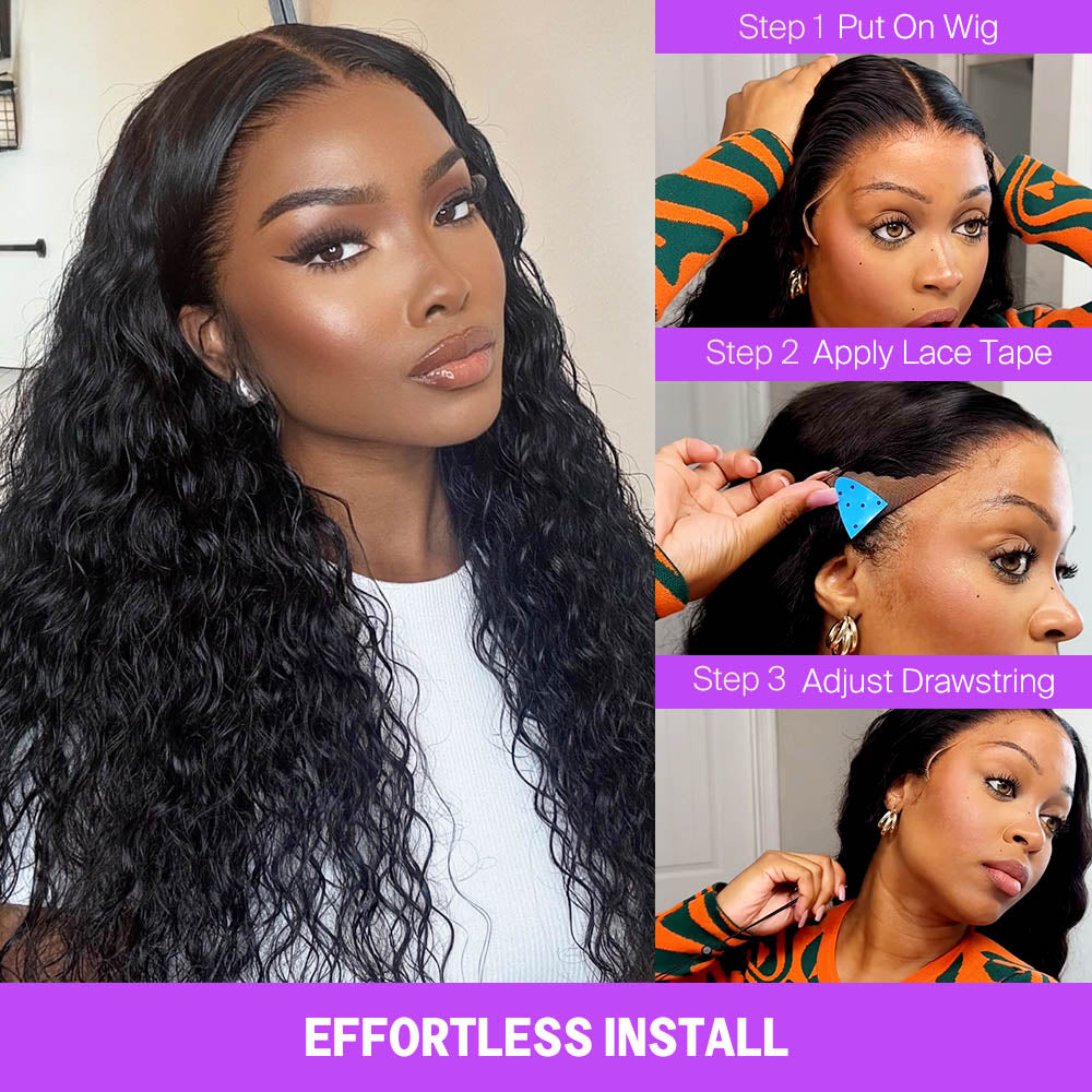 Megalook 13x6 Three-Go™ Glueless Wig Water Wave With Finger Coil Ends With Drawstring 100% Human Hair Wig