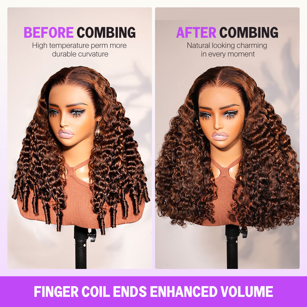 Megalook 13x6 Three-Go™ Glueless Wigs Dark Brown With Highlights Water Wave Wig With Finger Coil Ends