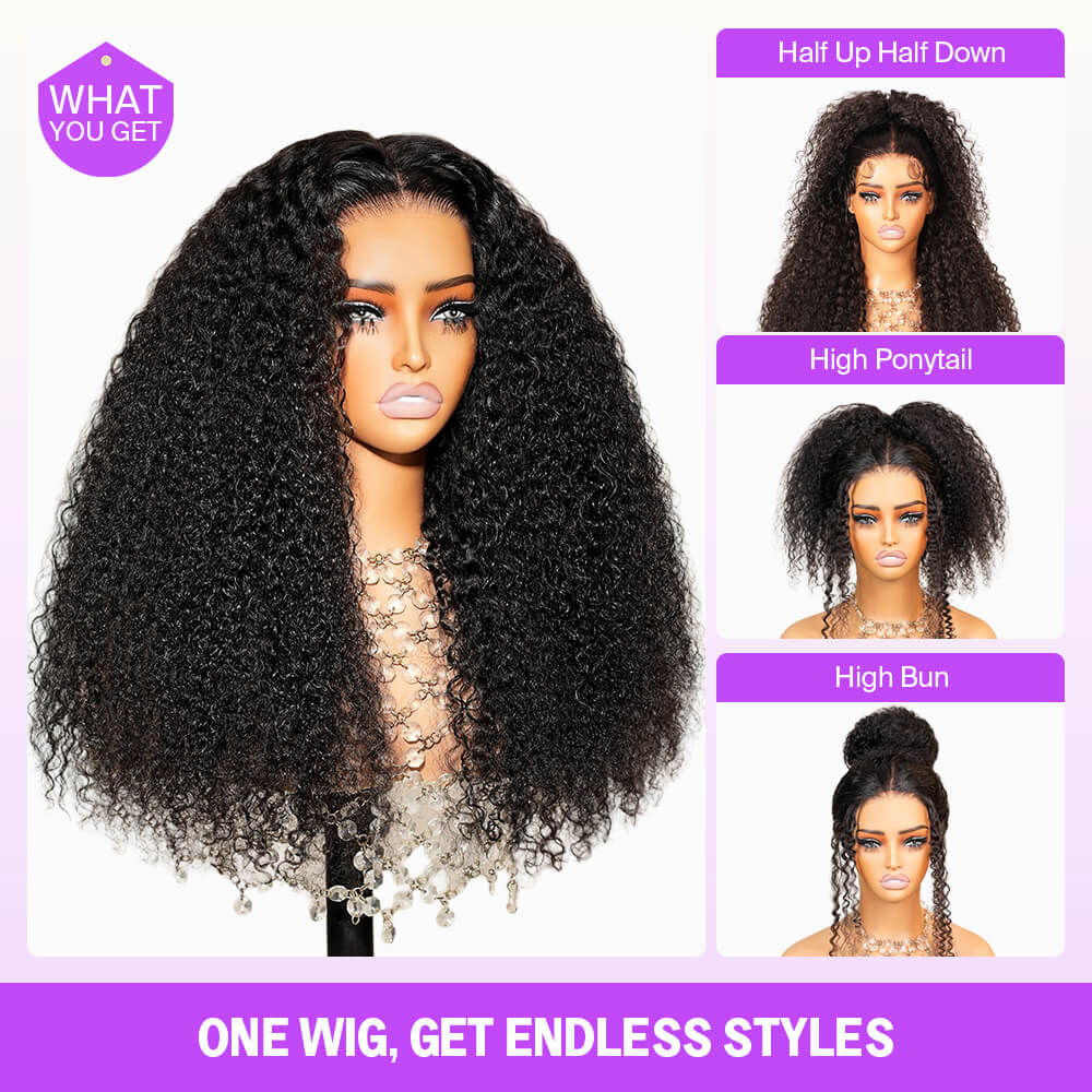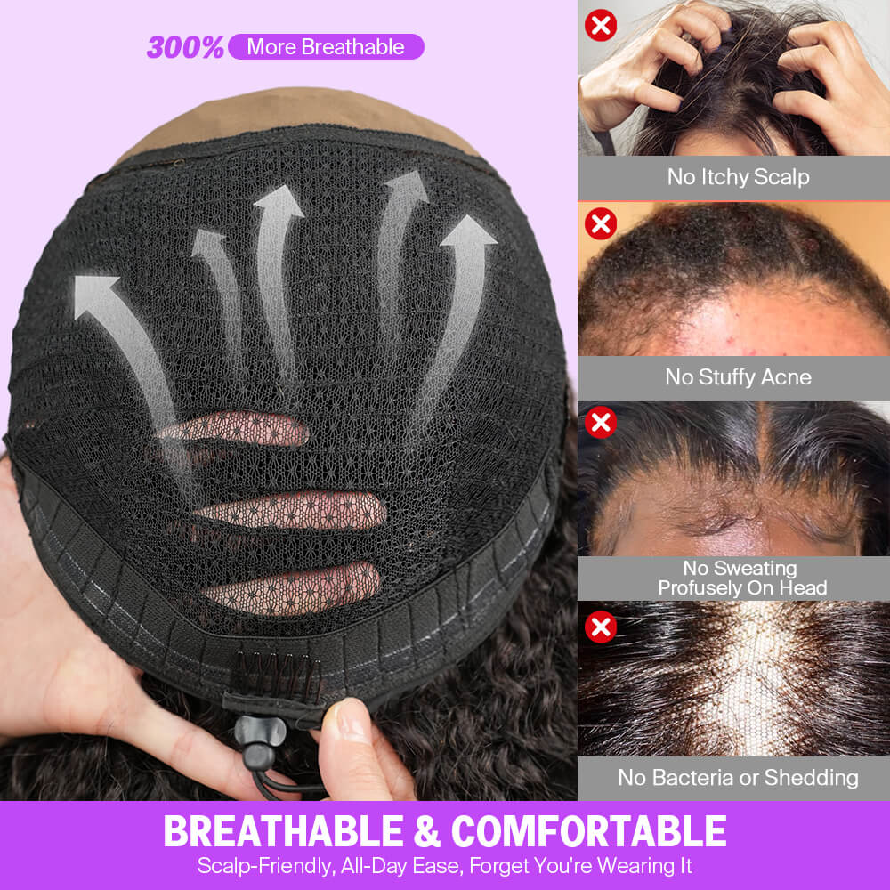 Megalook 3D Lace Half Wig Gluless Curly Hair With Breathable Dome Cap 6Inch Deep Parting