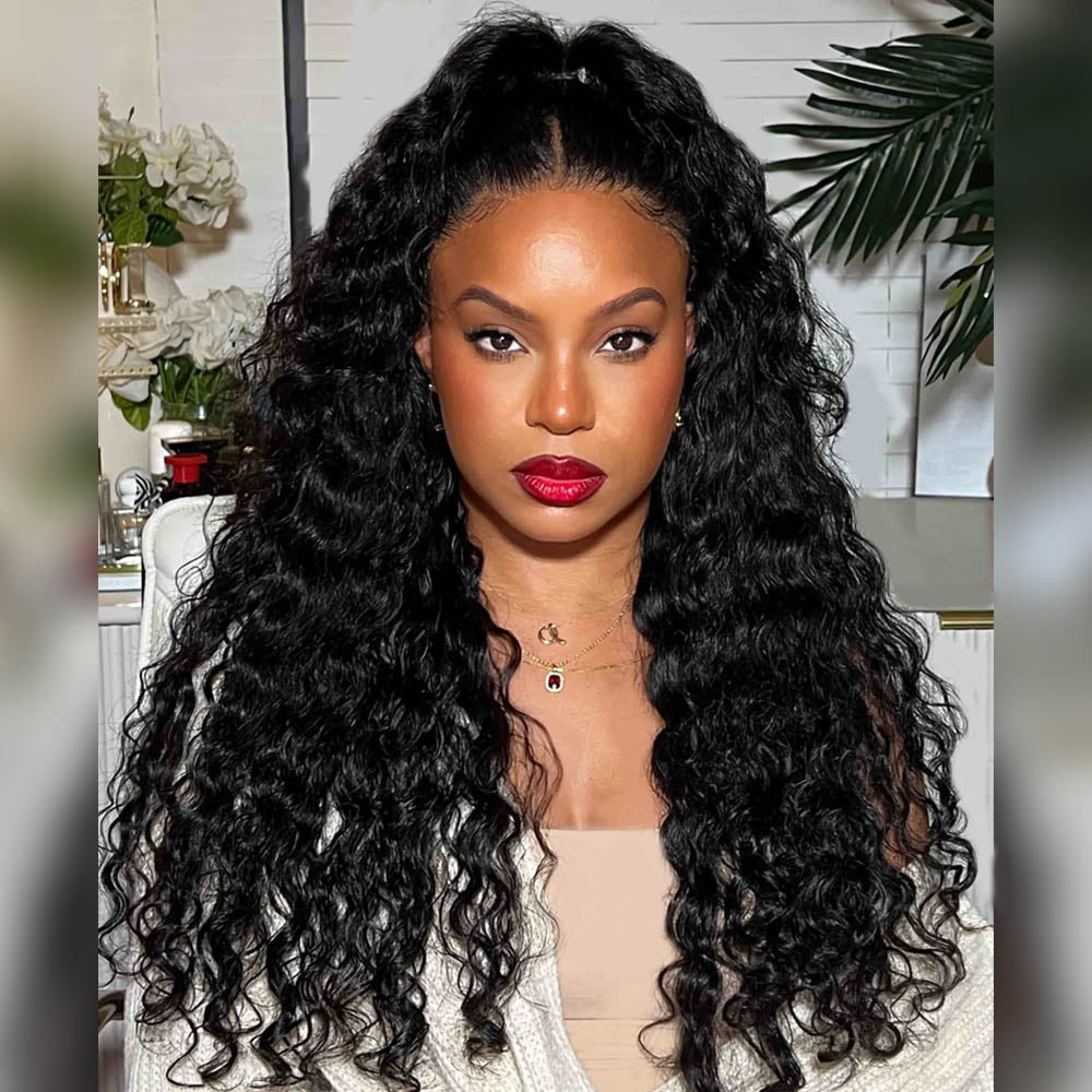 Megalook Limited Time 13x6 Three-Go™ Glueless Wig 26 Inch Water Wave With Drawstring Natural Black Breathable Cap 100% Human Hair Wig