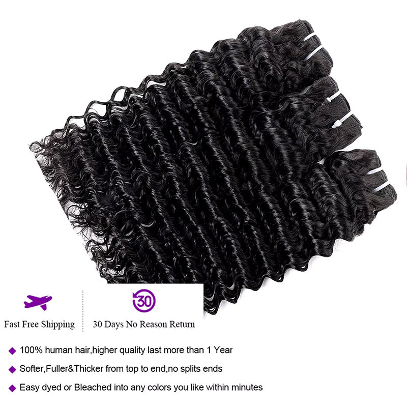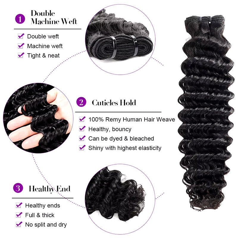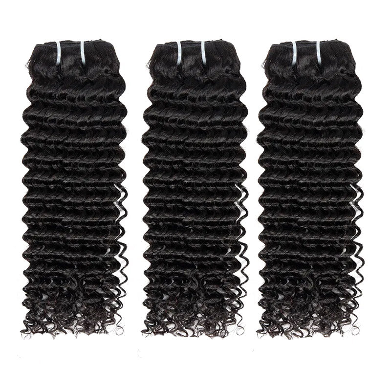 15A Deep Wave Hair Extensions Double Drawn Human Hair 3 Bundles Deal Full From Top To End