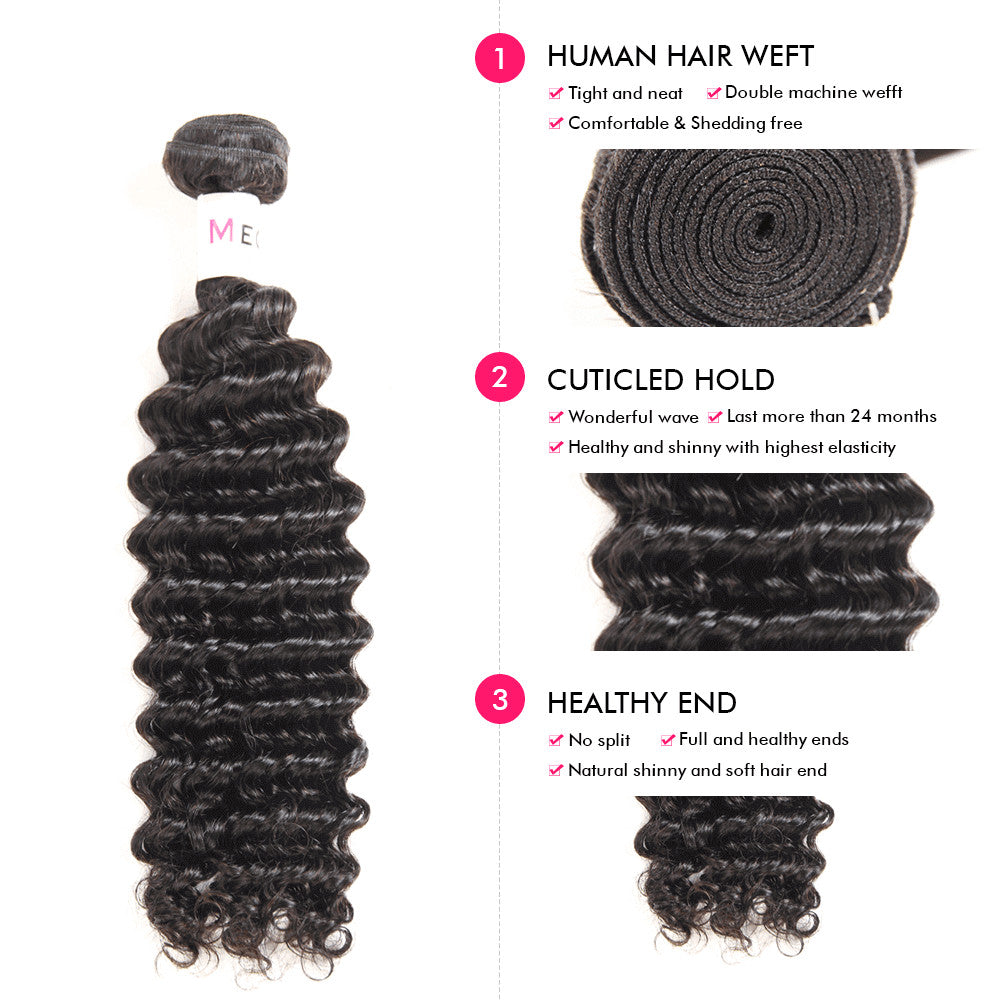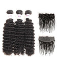 3Bundles Brazilian Deep Wave Hair With 13*4 Ear to Ear Lace Frontal Closure 10A Grade Deal