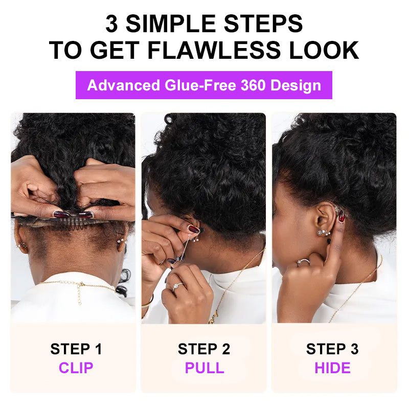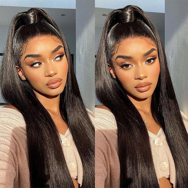 Megalook 360 Full Lace Glueless Silky Straight Wigs Invisi Drawstring Natural Black Pull & Go