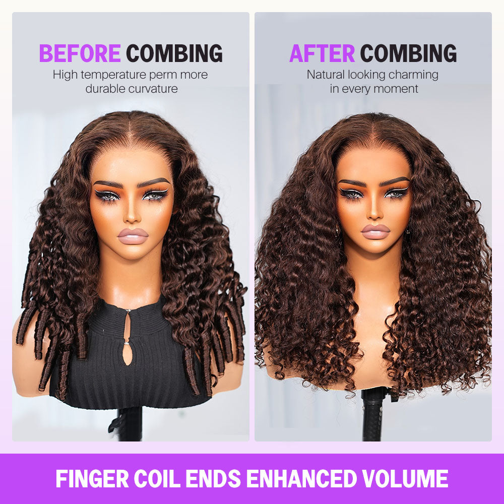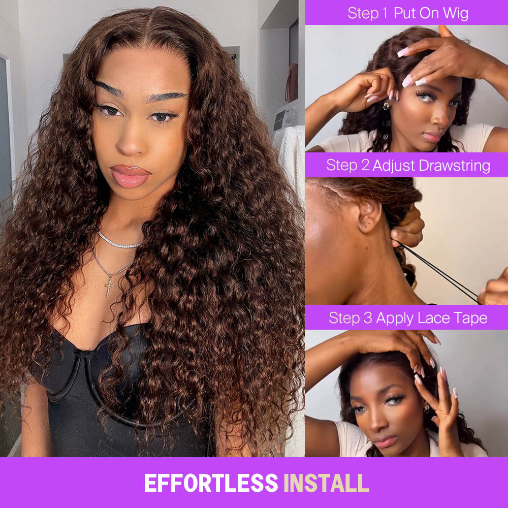 Megalook 13x6 Three-Go™ Chocolate Brown Glueless Wigs Water Wave Curly with Drawstring 100% Human Hair Wig
