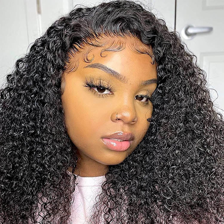 Megalook 13x4 Lace Frontal Jerry Curly Wig Invisible Knots Natural Black Natural Hairline