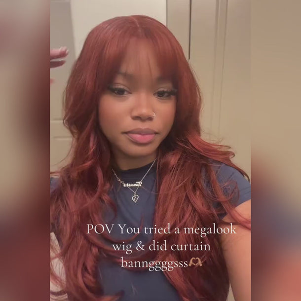 Megalook 5x5 Lace Closure Reddish Brown With Bang Loose Wave Wigs Realistic Hairline