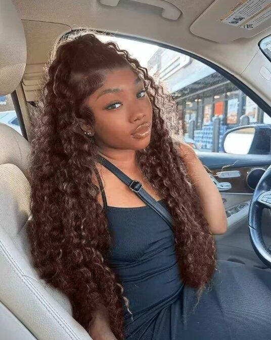 Megalook 13x6 Three-Go™ Chocolate Brown Glueless Wigs Water Wave Curly with Drawstring 100% Human Hair Wig