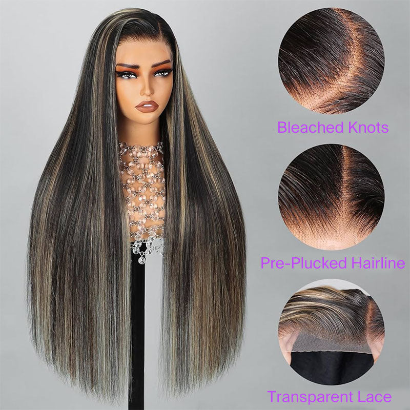 Megalook 13x6 Three-Go™ Auburn Highlights On Black Glueless Wigs Silky Straight With Drawstring 100% Human Hair Wig