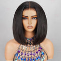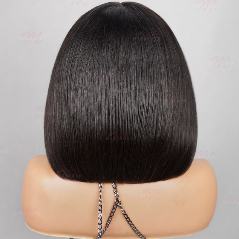Megalook 6 Inches Deep Part Wigs Straight Bob Natural Black 100% Human Hair Wig