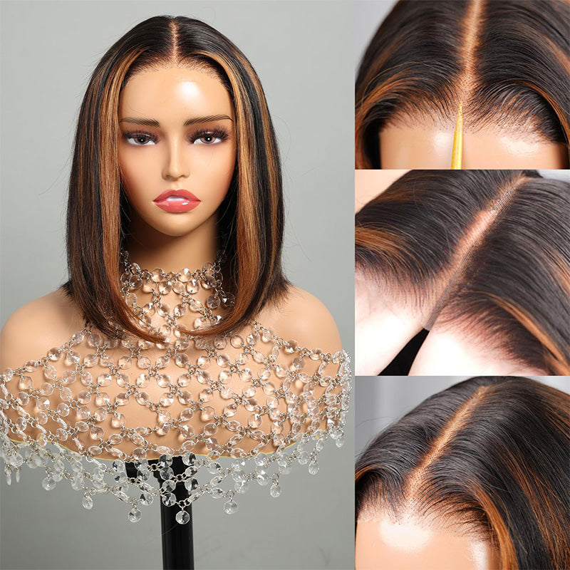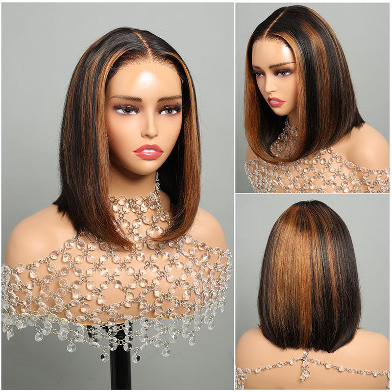 Megalook Bogo Free 13x4 Bob Lace Wig Pre-Plucked Highlight 1BP30 Straight 100% Human Hair Wig