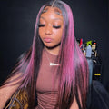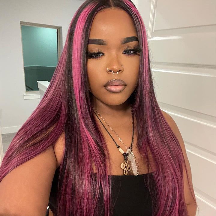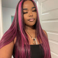 Megalook Bogo Free Transparent 13x4 Lace Front Wig Black Hair With Purple Highlights Straight Human Hair Wigs