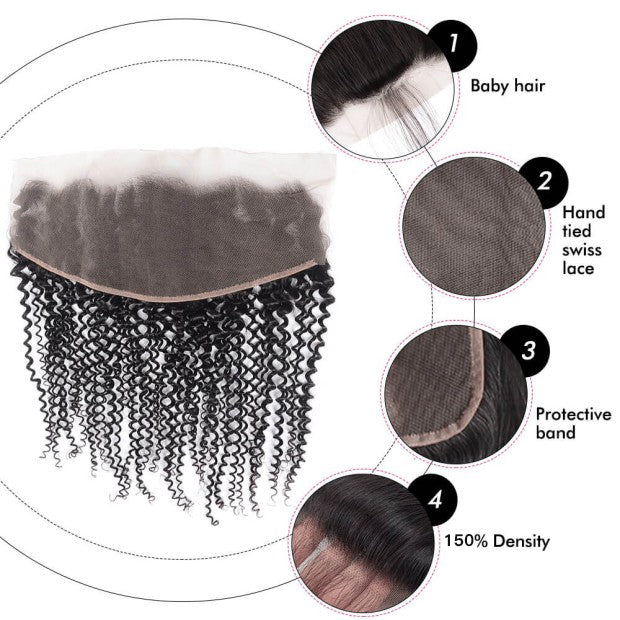 Kinky Curly 5x5/13x4 Transparent Lace Frontal Closure Brazilian Virgin Hair Ear to Ear Frontal Free Part