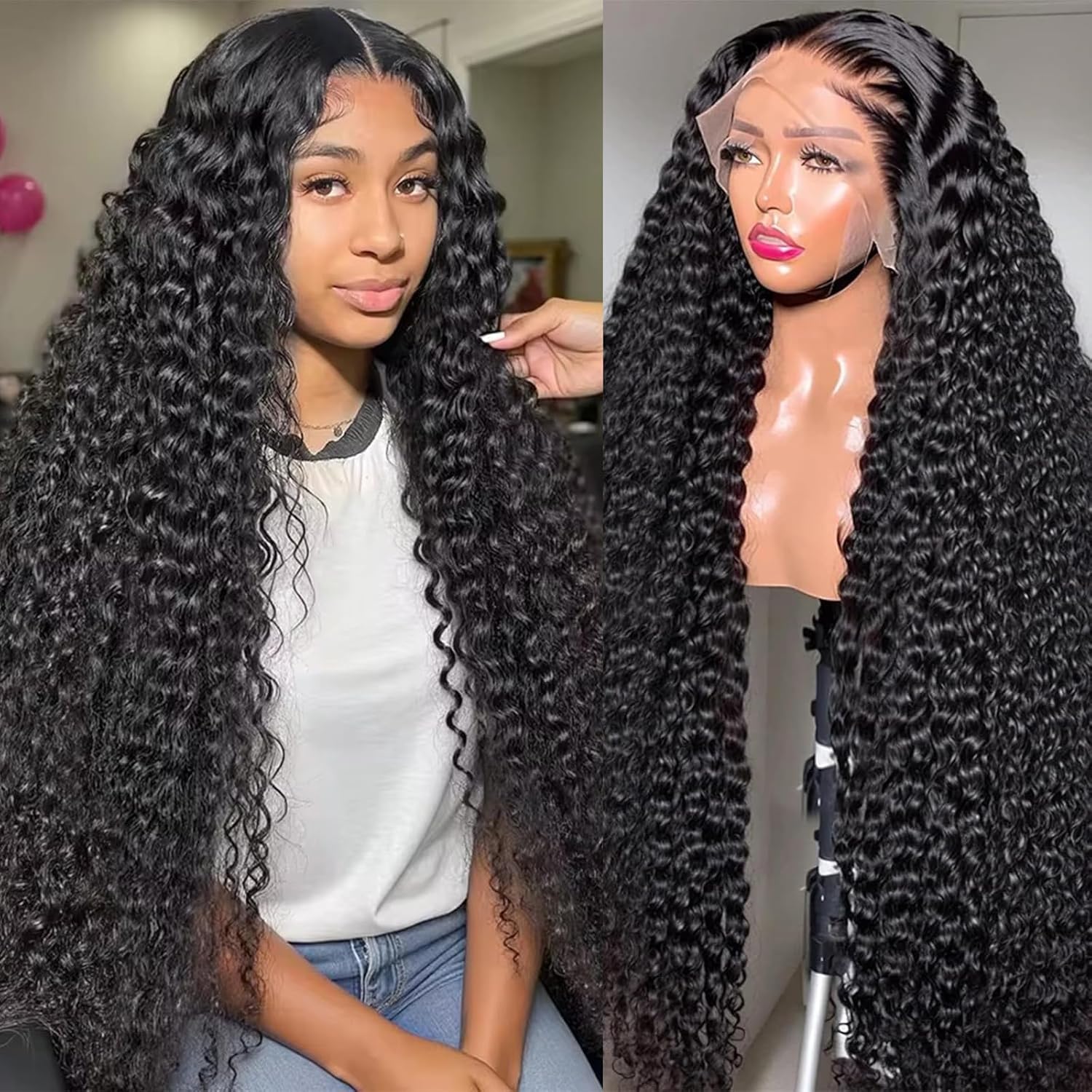 Megalook 30 Inch 13x4 Lace Frontal Natural Black Curly Invisible Knots Breathable Cap
