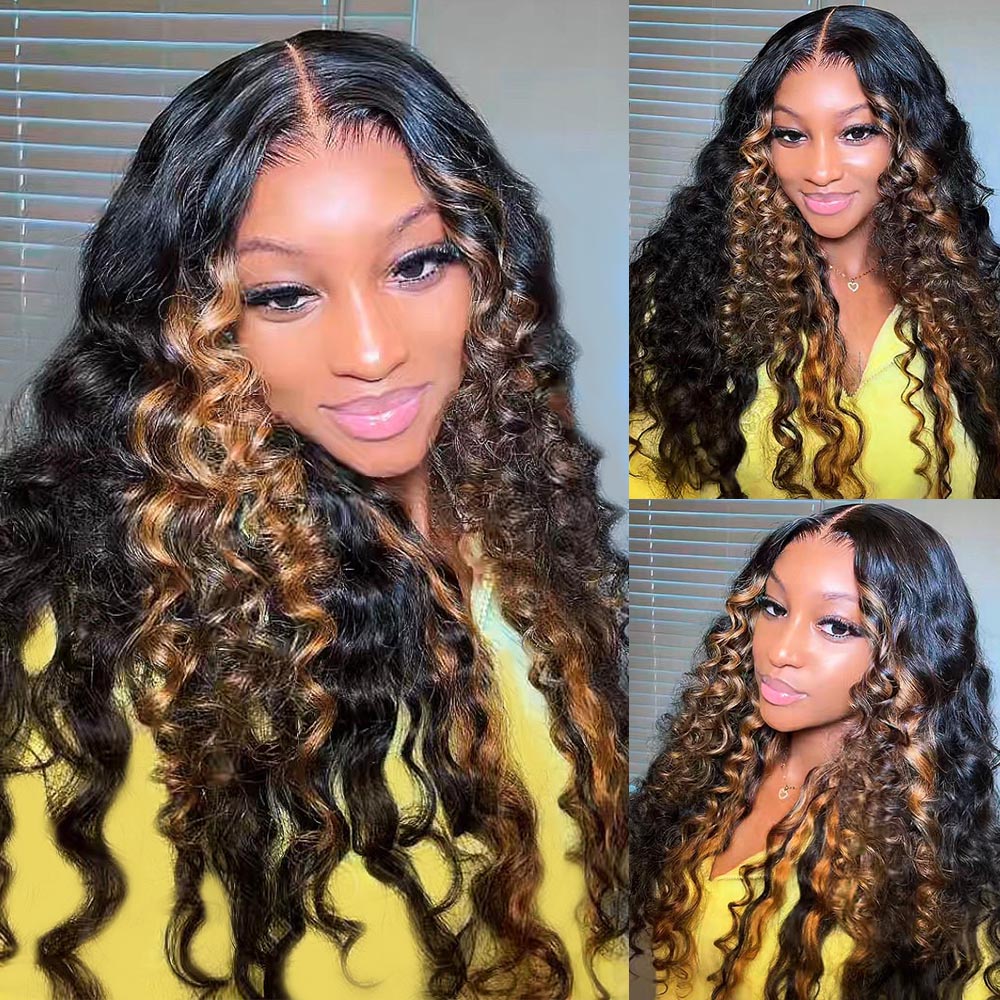 Megalook 13x6 Three-Go™ Honey Blonde Money Piece Glueless Wigs Bohemian Curl with Drawstring 100% Human Hair Wig