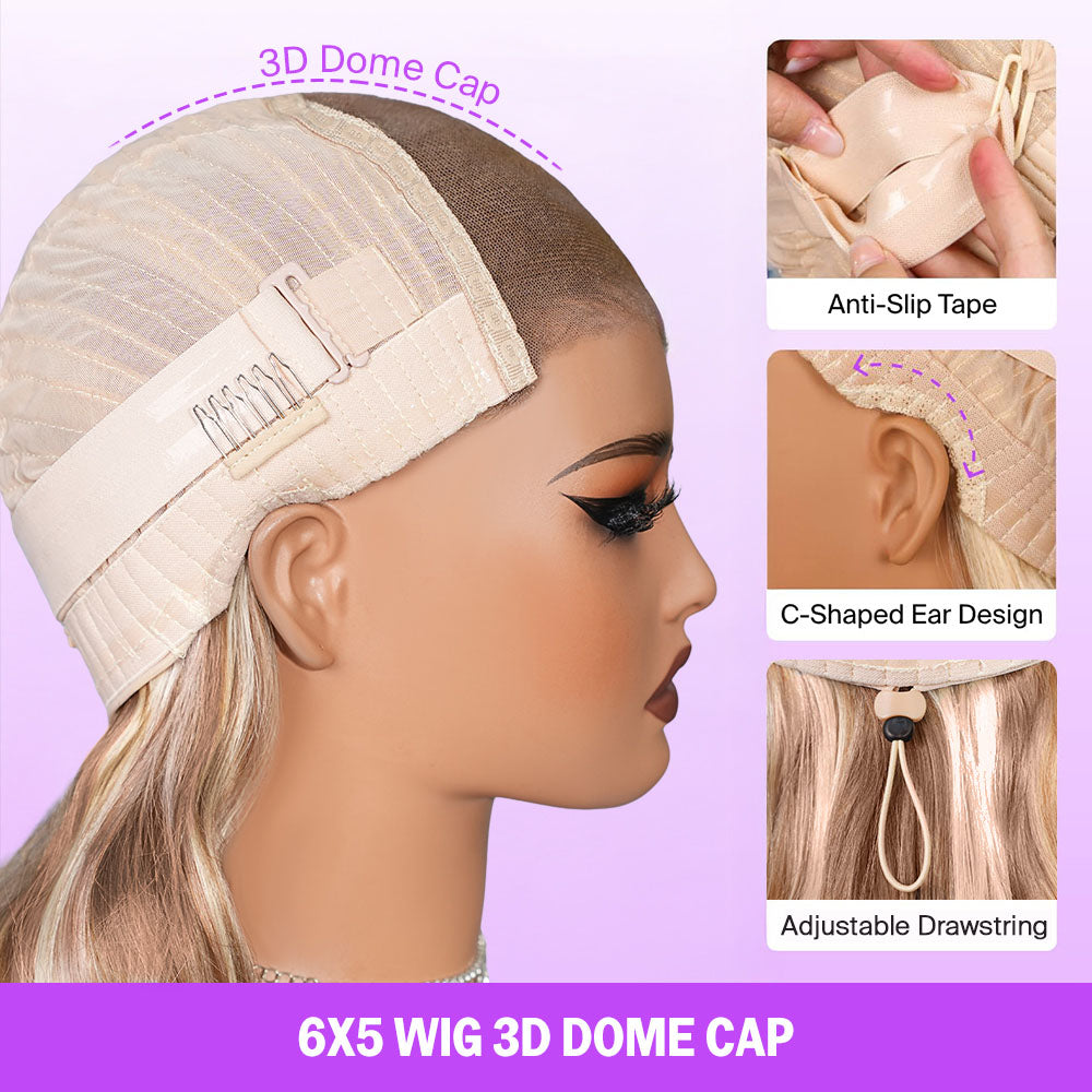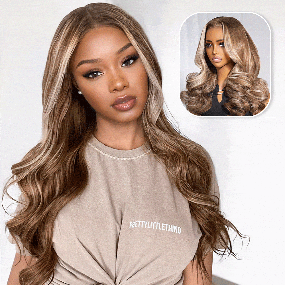 Megalook 6x5 Invisible Knots Glueless Light Brown With Blonde Highlights Body Wave Wigs Pre-cut Lace Beginner Friendly