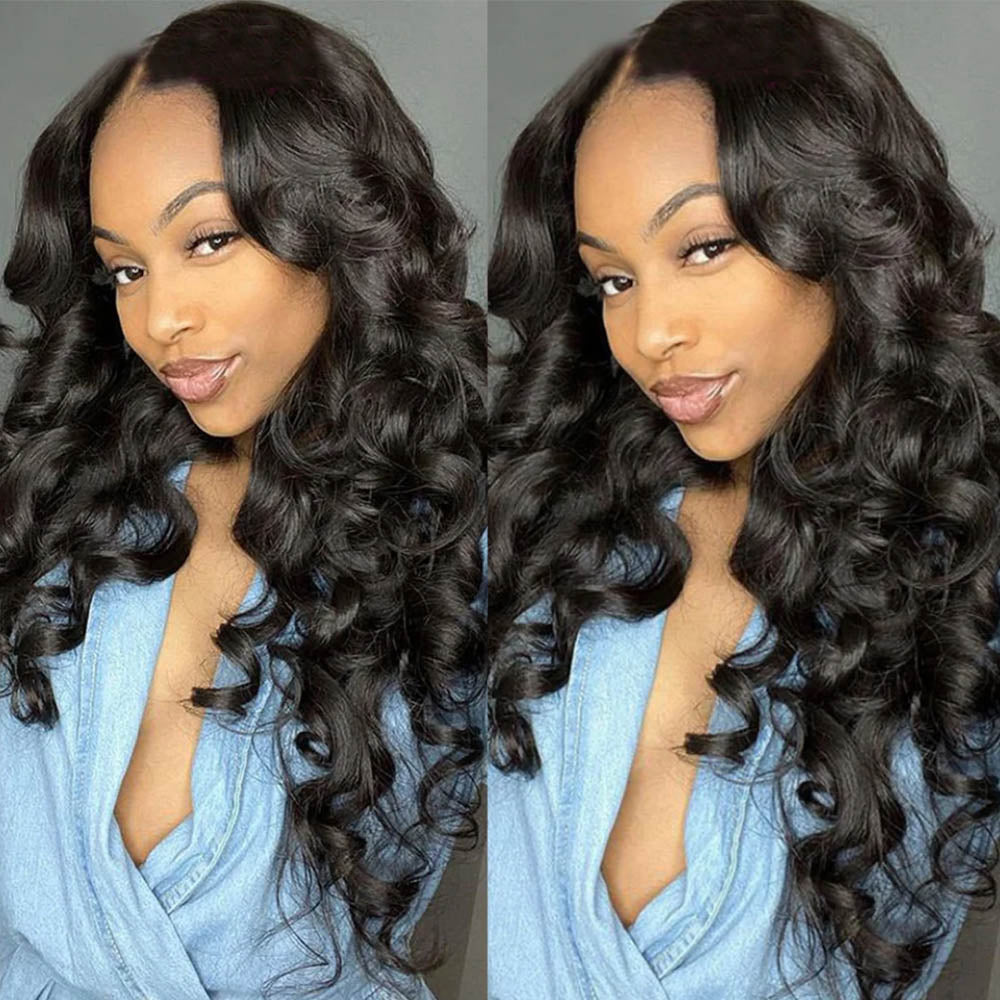 Megalook 6x5 Invisible Knots & 13x4 Lace Frontal Bouncy Curl Wigs Pre-cut Lace Natural Black Beginner Friendly