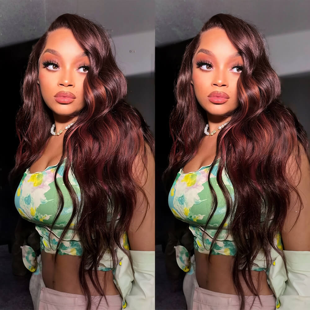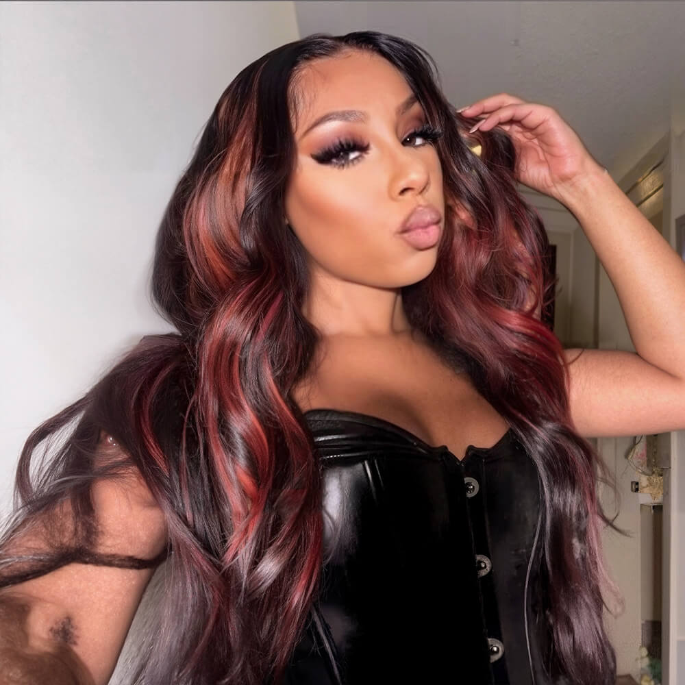 Megalook 6x5 Invisible Knots Glueless Natural Black With Highlights Body Wave Wigs Pre-cut Lace Beginner Friendly