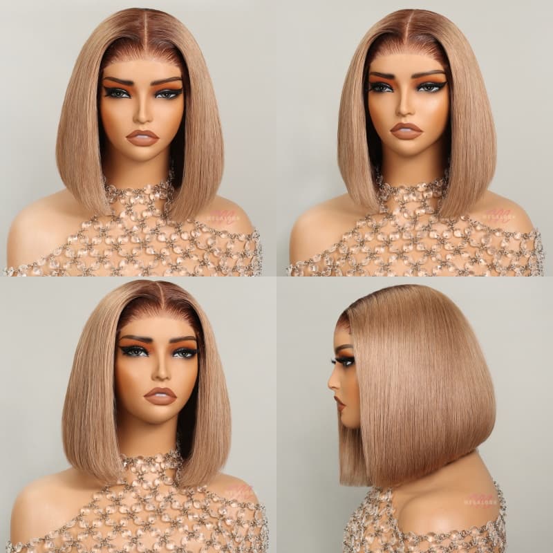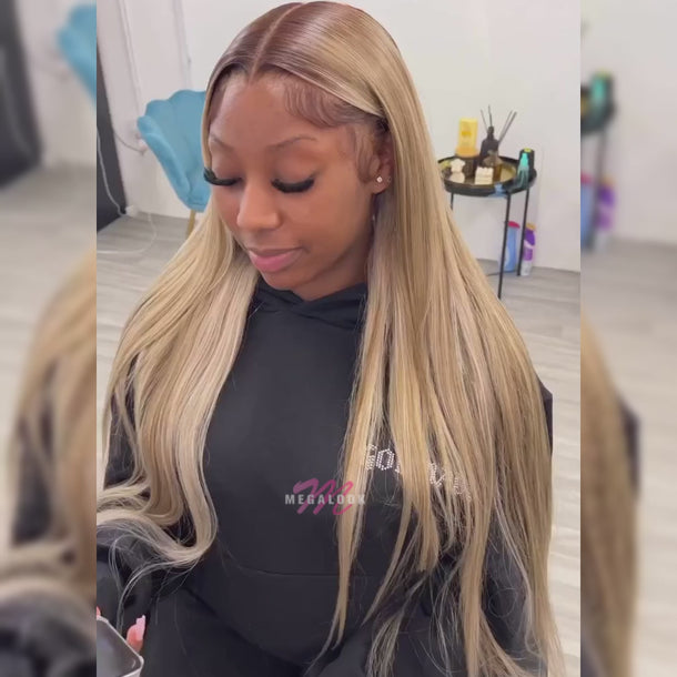 Megalook 6x5 Invisible Knots Glueless Milk Tea Brown Ombre Straight Realistic Hairline Beginner Friendly