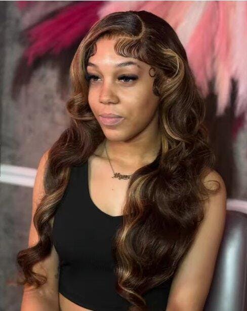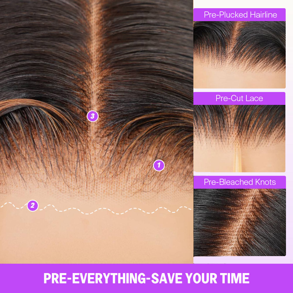 Megalook 6x5 Invisible Knots Glueless Auburn Highlights On Black Body Wave Wigs Pre-cut Lace Beginner Friendly