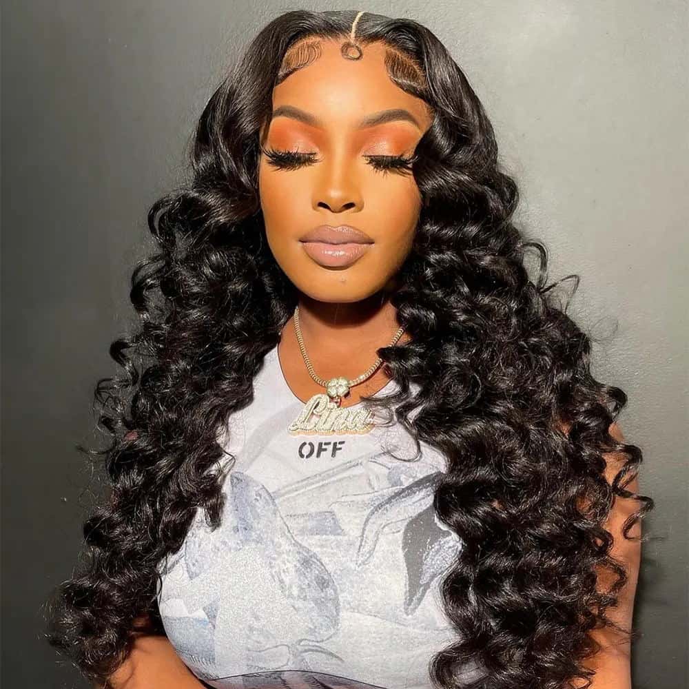 Megalook 13x4 Lace Frontal Wig Loose Curly Invisible Knots Natural Black Breathable Cap