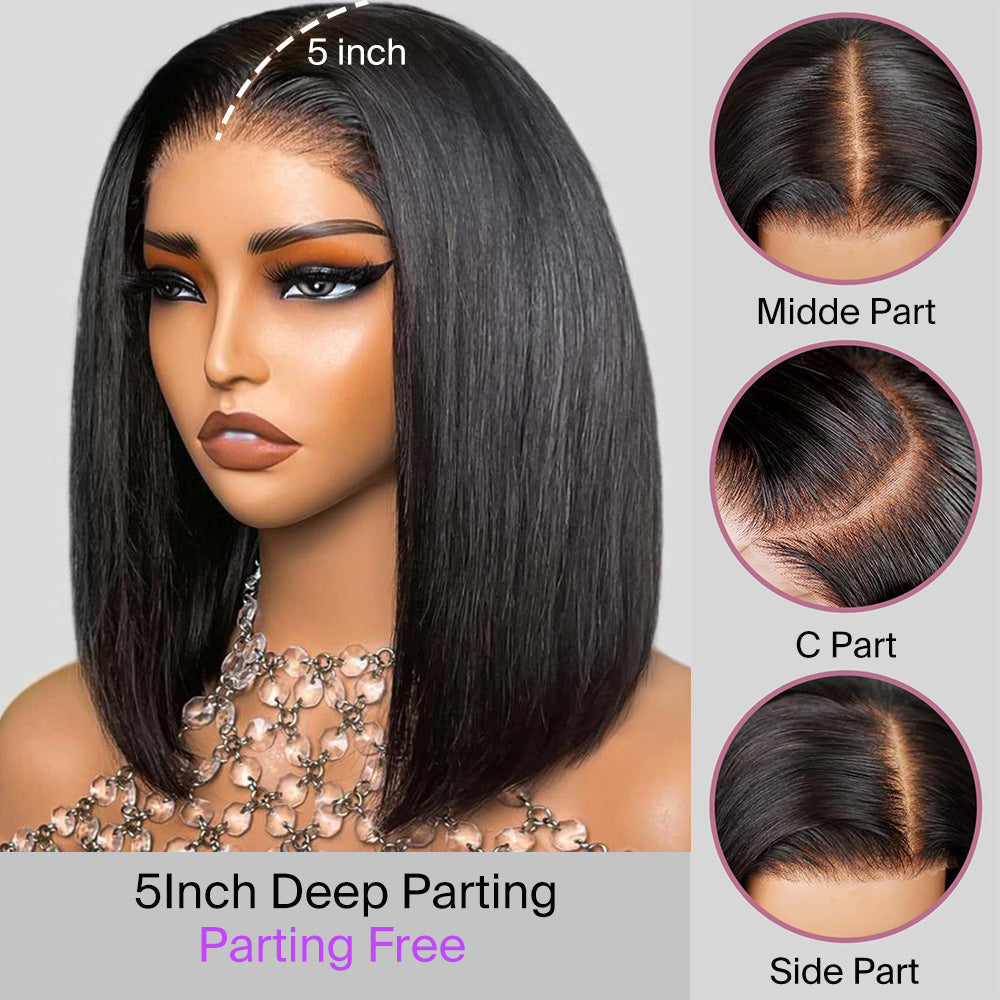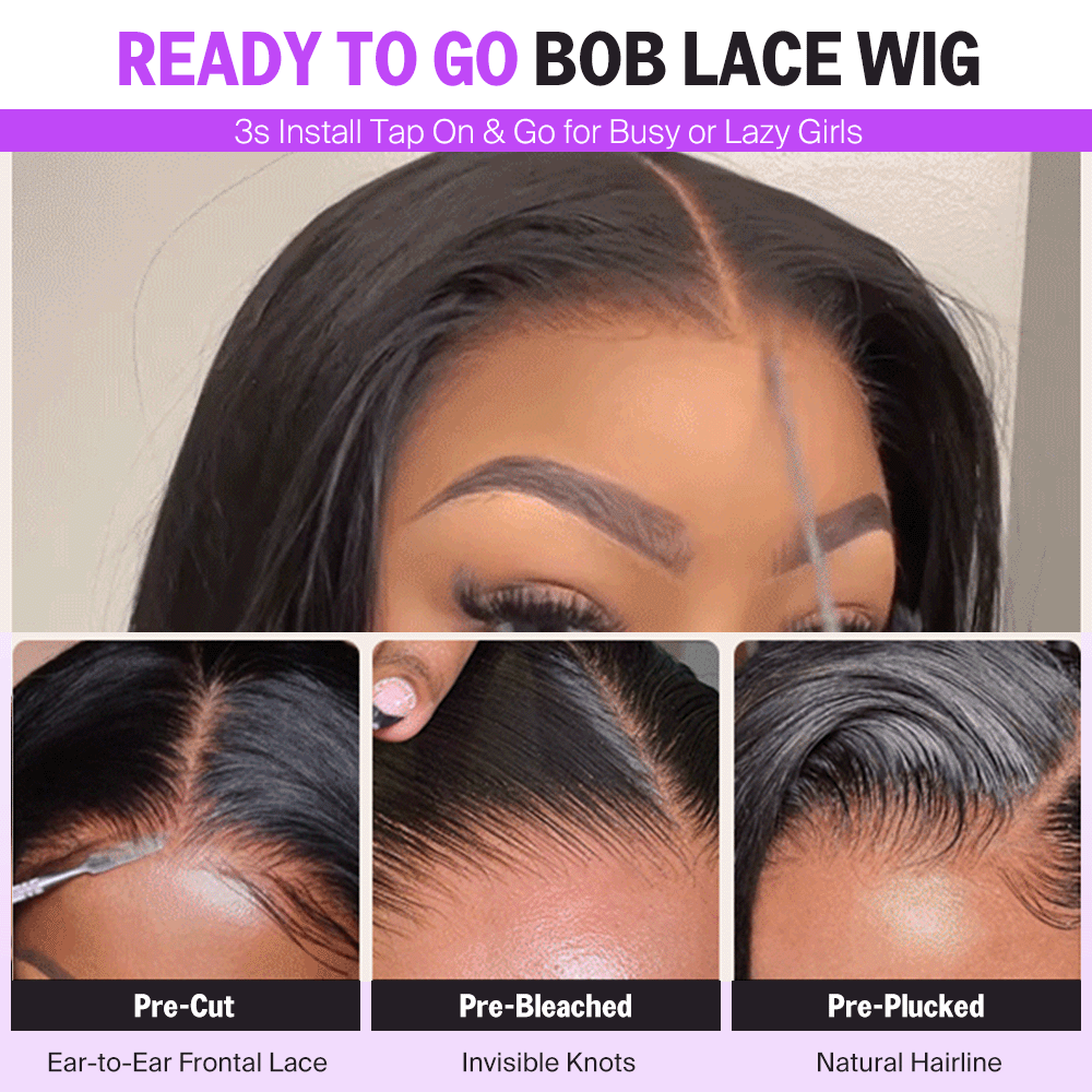 Megalook 13x5 Pre-All Glueless Straight Bob Invisible Knots Natural Black Beginner Friendly