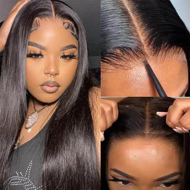 Megalook 6x5 Invisible Knots Glueless Straight Wigs Pre-cut Lace Natural Black Breathable Cap