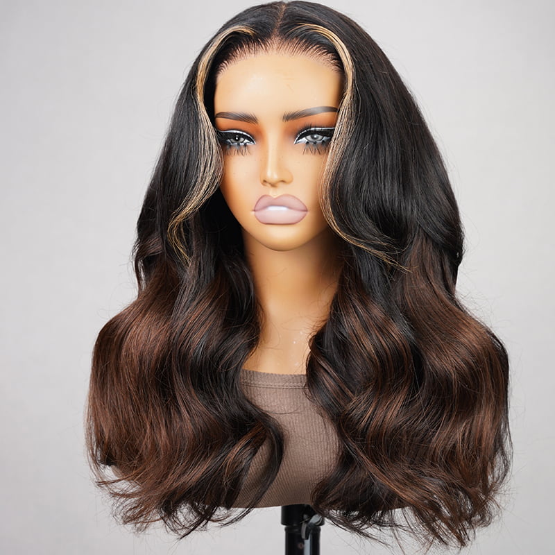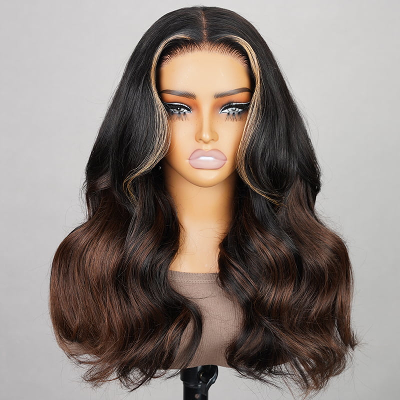 Megalook 6x5 Invisible Knots Glueless Black To Brown Ombre Loose Body Wave Wigs Realistic Hairline Beginner Friendly