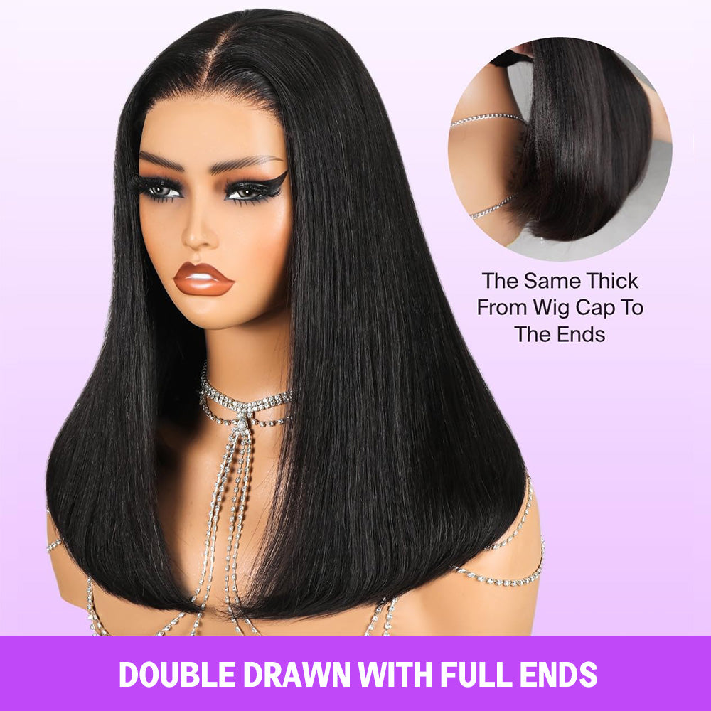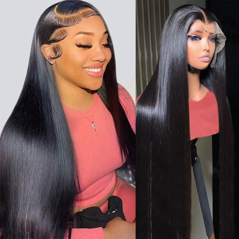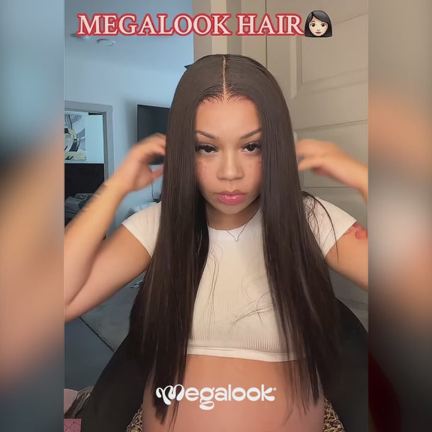 Megalook 6x5 Invisible Knots & 13x4 Lace Frontal Silky Straight Wigs Realistic Hairline Natural Black Beginner Friendly