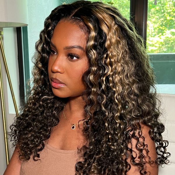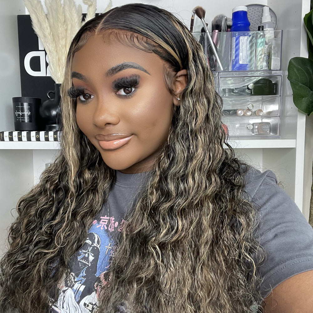 Megalook 13x4 Lace Frontal Balayage Highlight Water Wave Invisible Knots Natural Edges