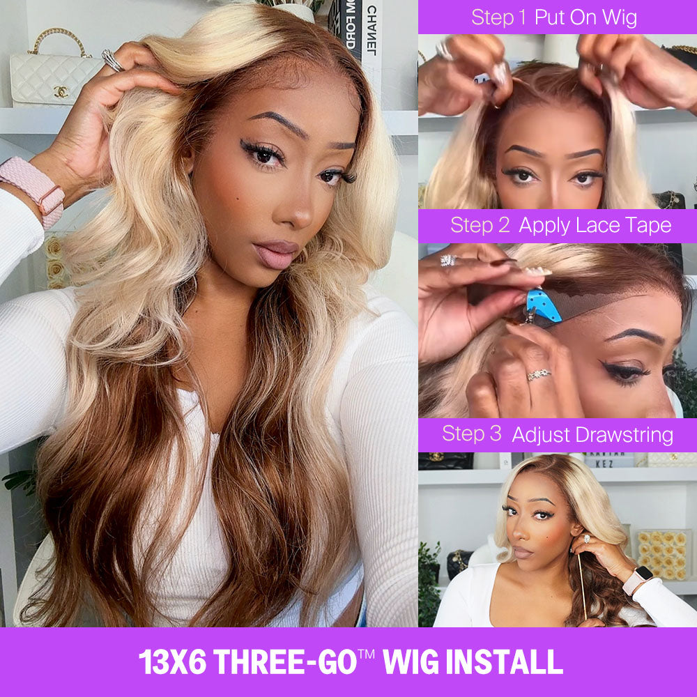 Megalook 13x6 Three-Go™ Champagne and Brown Ombre Colored 6x5 Pre-All Glueless Loose Body Wave Wigs