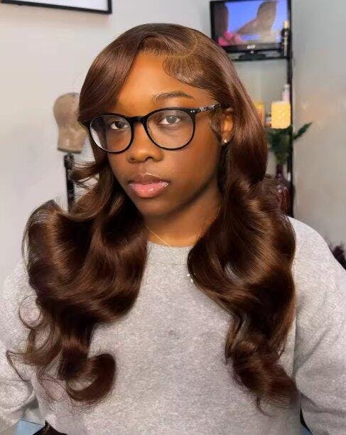 Megalook 13x6 Three-Go™ Chocolate Brown Glueless Wigs Body Wave with Drawstring 100% Human Hair Wig