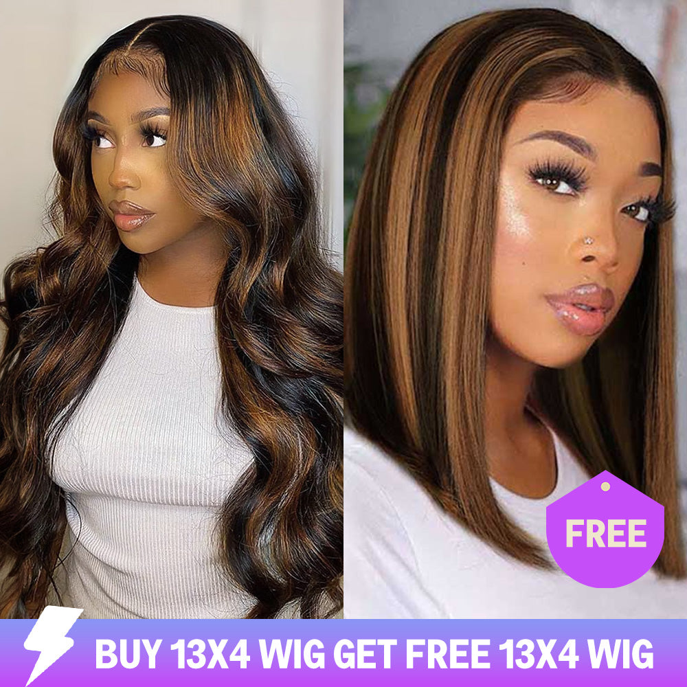 Limited-Time Offer-13x4 Lace Pre-Plucked Honey Blonde Ombre Body Wave+13x4 Lace Bob Wig