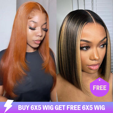 Limited-Time Offer-Salon-Quality Luxurious Glueless 6X5 Silky Straight Lace Wig+Balayage Short Bob Wig