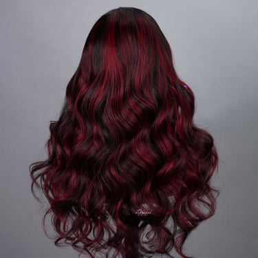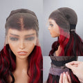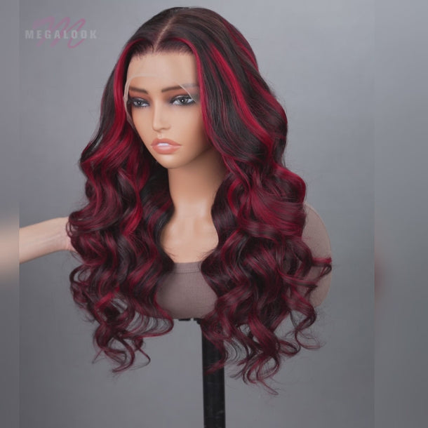 Megalook 13x4 Lace Frontal Red Highlight Body Wave Invisible Knots Natural Edges