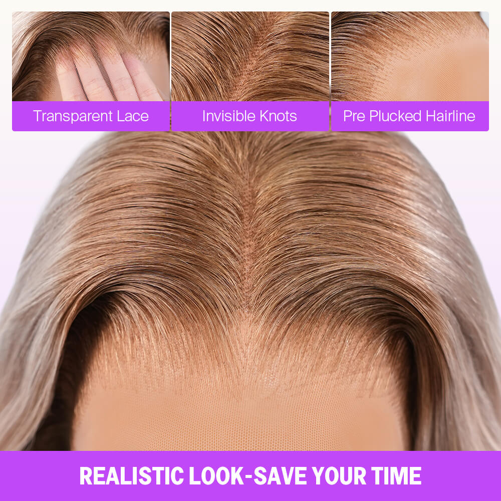 Megalook 13x6 Three-Go™ Ash Blonde Ombre Glueless Wigs Silky Straight With Drawstring 100% Human Hair Wig