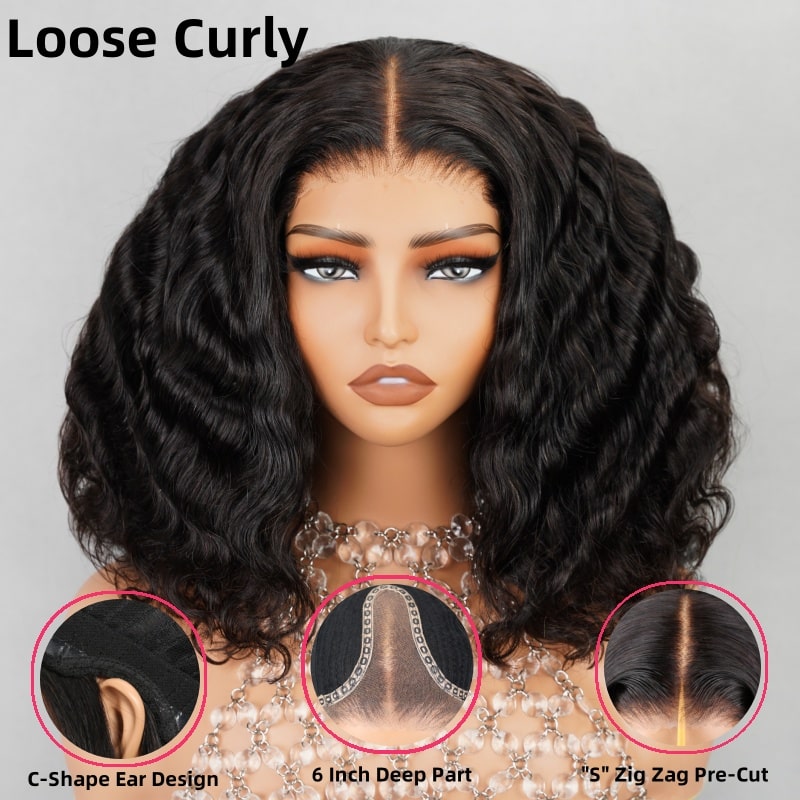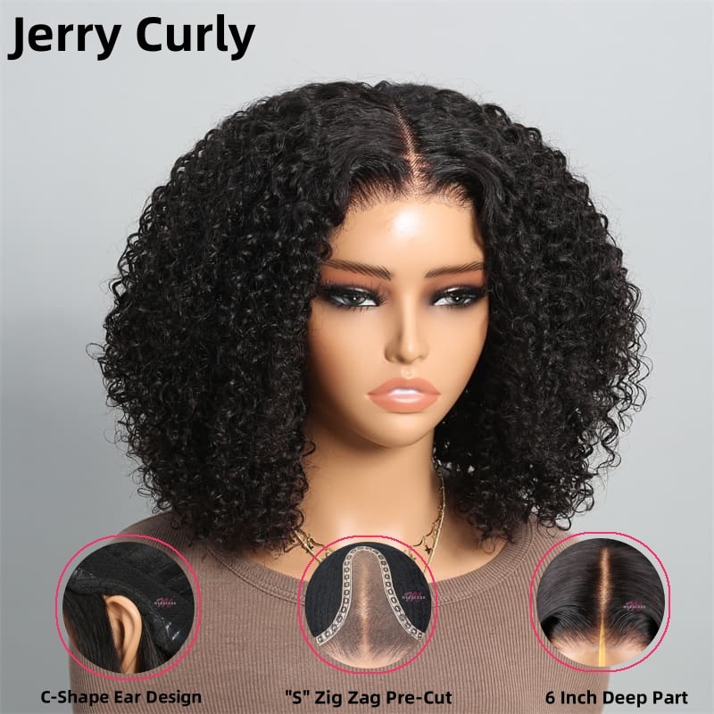 Megalook 6 Inches Deep Part Wigs Megalook Curly Natural Black Breathable Cap